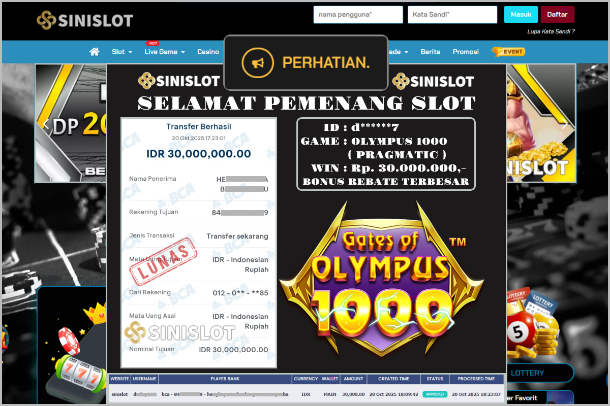 - Permainan : GATE OF OLYMPUS 1000 ( PRAGMATIC )
